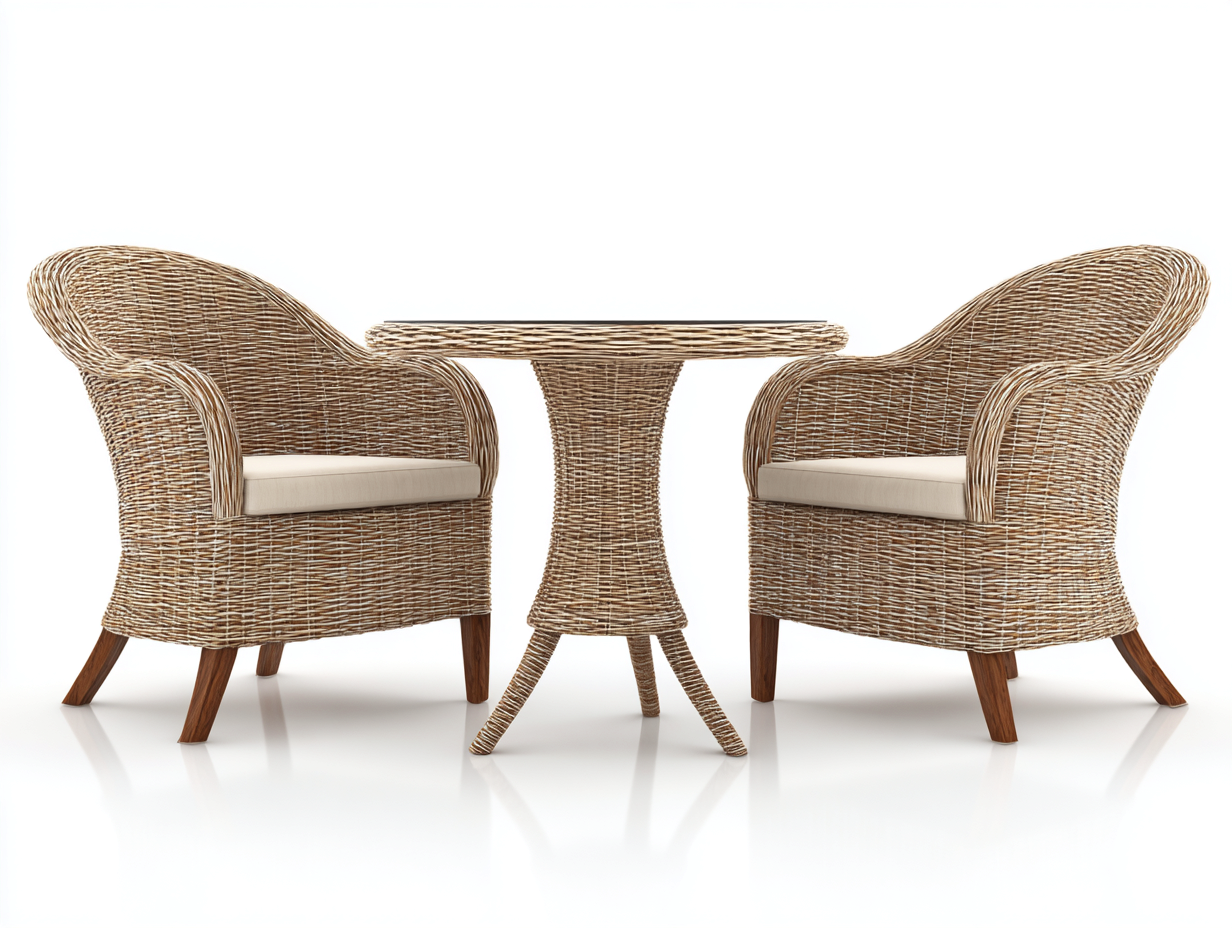 Salon de jardin pour terrasse en rotin bois 2 fauteuils 80x75x80 cm et table 70x70x75 cm - naturel - style contemporain