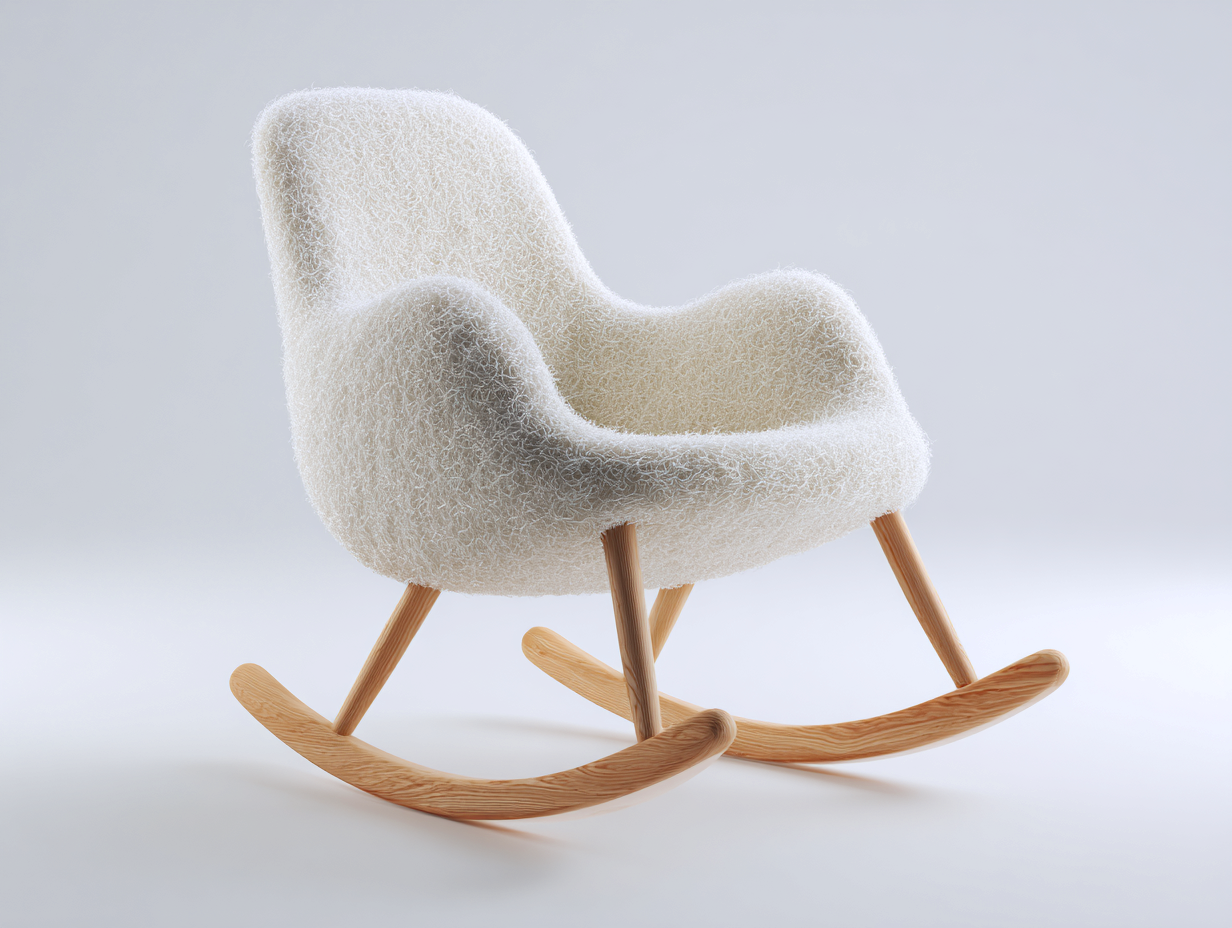 Fauteuil à bascule en laine feutrée écru 78x74x86 cm - pour salon - style minimaliste nordique