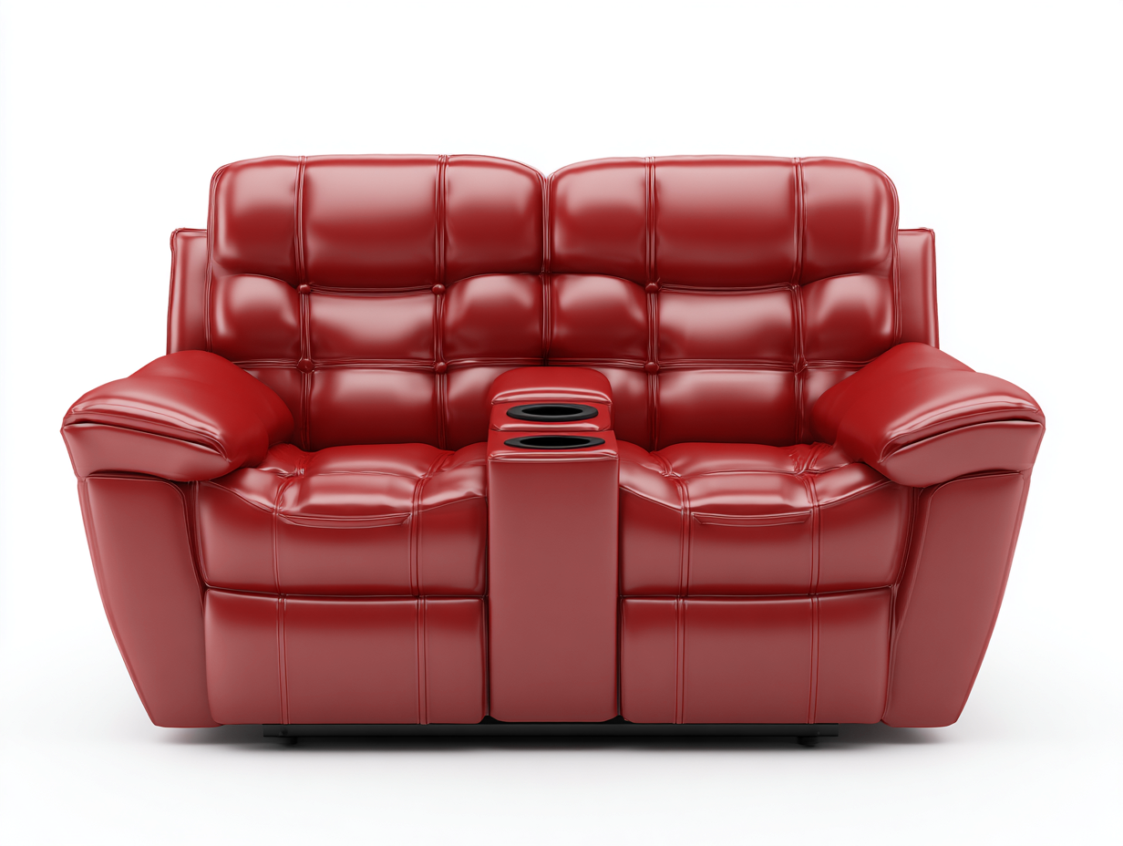 Canapé relax 2 places revêtement synthétique rembourré 170x95x105 cm - Rouge - Confort cinéma