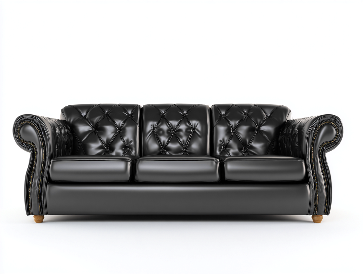 Canapé 3 places en cuir capitonné 210 x 95 x 75 cm - noir - style classique pour salon
