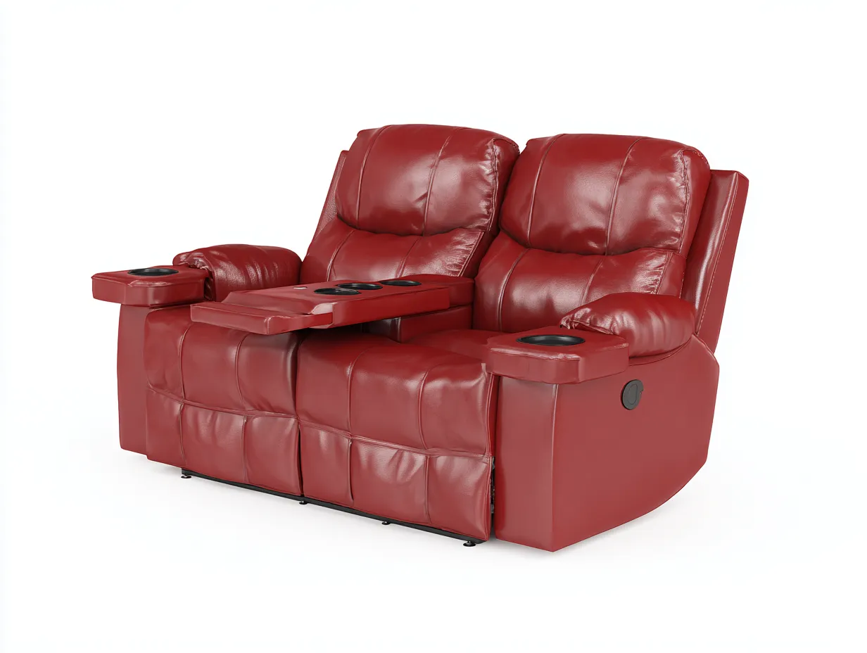 Canapé relax 2 places revêtement synthétique rembourré 170x95x105 cm - Rouge - Confort cinéma